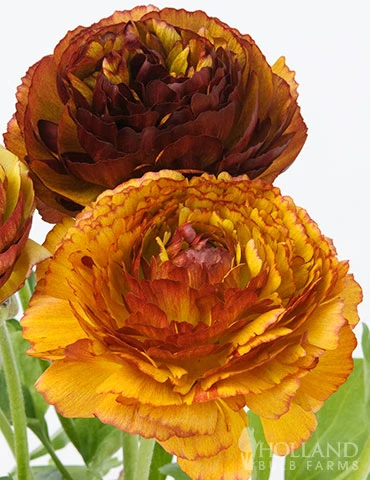 Shades of orange, yellow, red, bronze, and copper adorn the Cafe au Lait Buttercups in early summer. Ranunculus make lovely cut flowers, and grow well in containers.