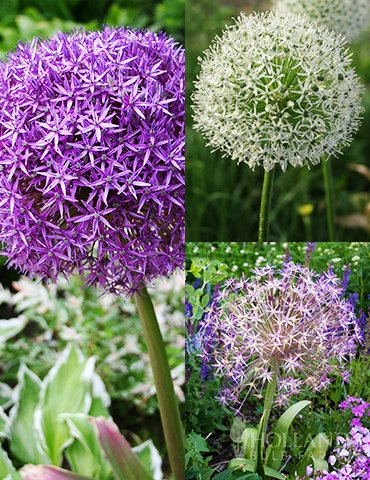 The Colossal Blooms of these three varieties of Allium will absolutely knock your socks off and impress your friends and family. Allium bulbs are easy to grow, show stopping, late spring/early summer blooming perennial bulbs. There blooms last a long time once the flowers are spent and they have dried they make a stunning addition to dried floral arrangements or dried alone in a simple vase.