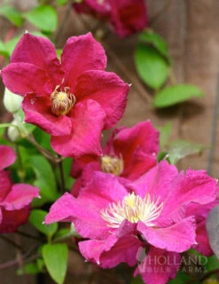 The Ernest Markham Clematis is truly a wonder to behold! Its 4-6″ diameter pinkish-red, magenta blooms are produced profusely on the current year’s growth. Desiring a sunny location but with shaded “feet” or roots, this clematis is sure to make its home on your arbor, trellis, or decorative wall. Reaching 6-8′ in height, this guy is a real go-getter!