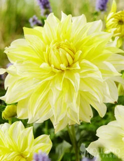 La Luna Dahlia is like having a big soft yellow moon glowing in your garden! La Luna is a decorative dahlia with blooms up to 10″ in diameter! Plant La Luna Dahlia in a sunny location with soil that drains well. Once La Luna begins blooming with it’s soft glowing yellow blooms in mid-summer expect the show to continue until the first frost of the year. La Luna is an excellent cut flower, and looks nice when planted with purple, orange or white dahlias.