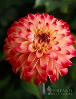 Lady Darlene is a shining beauty in the garden bed or border. Large blooms are magical and color chaging starting as a more sold cranberry red color, openeing to a red and golden blush combination and finally once the blooms are fully opened an apricot based bloom with red petals. Lady Darlene Dahlia is a tall bloomer, up to 4′ in full sun, and makes a stunning cut flower.