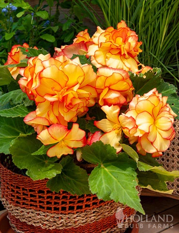 Jazz up your containers and borders with this frilly Picotee Begonias in an assortment of colors. Picotee begonias feature a different color on the edge of the petal than what the main petal color is. This super pack comes with 5 bulbs, which would fill a 10-12″ diameter container. Begonias perform best when started indoors, in late winter, we ship all orders containing only begonias starting in the end of February.