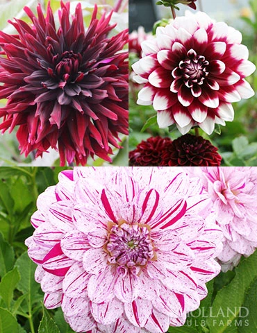 Add splashes of red and white to your garden to create a peppermint dream! Decorative Dahlias will grow lush green foliage and colorful large blooms late spring! Would make for a great cut flower garden!