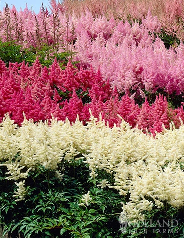 Astilbe are the perfect perennial to add pops of color to a shady area in your garden! The Plum Bouquet Astilbe Mix offer large plumes of purple, pink and white blooms that are deer resistant and attract pollinators! Astilbe grow best in shade to partial shade in moist but well drained soil. Brighten up any shady spot in your garden with this beautiful mix!